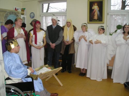 Jasełka Święta Bożego Narodzenia mają w sobie magiczny czar. Czekamy na nie cały rok i kiedy przychodzi ta chwila, staramy się być blisko siebie i mieć otwarte serca dla innych. Z okazji zbliżających się świąt do Chojnickiego hospicjum przybyli goście z Warsztatów Terapii Zajęciowej w Czersku z jasełkami bożonarodzeniowymi. Ciekawa scenografia oraz wspólnie śpiewane kolędy wprowadziły w nas świąteczny nastrój. Po zaprezentowaniu programu artystycznego i złożeniu życzeń pracownicy hospicjum wręczyli gościom drobne upominek i słodki poczęstunek. Wspólnym kolędowaniem goście pożegnali pacjentów i pracowników hospicjum. W towarzystwie Maryi i Józefa, pasterzy, Trzech Króli oraz grona aniołów pacjenci mieli udział w tajemnicy narodzenia Pana Jezusa Strona w języku polskim Strona w jzyku angielskim