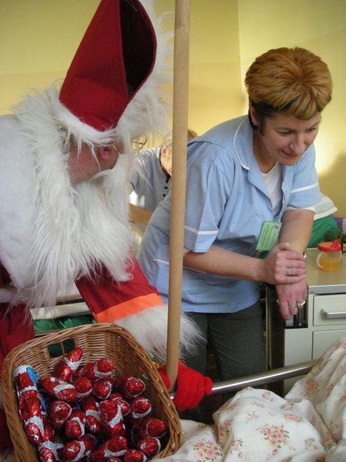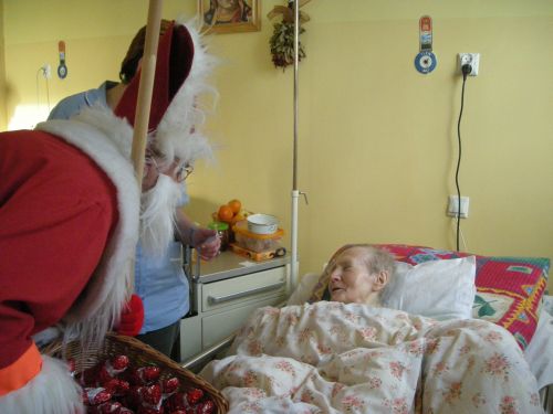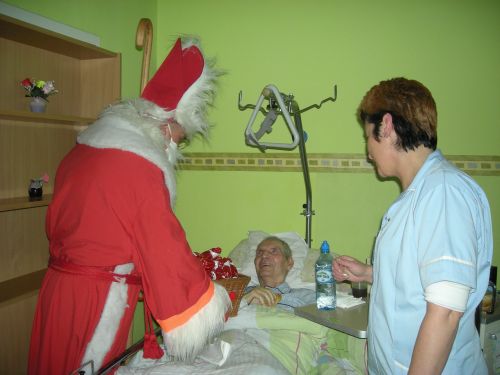 MIKOŁAJ Miejsce jest specyficzne, święta pod względem organizacyjnym wyglądają tu jak w większości domów, wyróżnia je jednak atmosfera szczególnej bliskości. Mowa o hospicjum ZNMP w Chojnicach. Podczas składania życzeń nie ma tu ogólnikowych stwierdzeń - wszystkiego najlepszego, pomyślności, każde zdanie jest wyważone, niebanalne i prawdziwe. To są prawie życzenia. Trudno powiedzieć, że zasiadają do stołów, bo trzeba do nich przynieść łóżka niektórych chorych. Razem z nimi są bliscy, wolontariusze, lekarze i pracownicy. "Pomimo cierpienia, zmagania się z chorobą, u większości jest uśmiech i blask w oku, gdy śpiewamy kolędy" I dodaje, że są też chorzy, zwłaszcza ci, dla których to pierwsze święta w tym miejscu, którzy odczuwają nostalgię za domem. Rodzi się w nich lęk i pytania: jak będzie ze świętami gdy tego wszystkiego, co mieli w domach, wokół nich nie ma. To już zadanie dla pracowników hospicjum. Zarówno pacjenci, ich rodziny jak i personel bardzo mocno przeżywają okres świąteczny. Świąteczne dekoracje dodają uroku i ciepła temu miejscu, pacjenci mogą więc czuć się jak w domu... Także z innego względu jest to wyjątkowy czas i wyjątkowe miejsce. Boże Narodzenie to czas gdy na świat przyszła największa miłość, która jest tak bardzo obecna i na każdym kroku widoczna właśnie w Hospicjum. Już 6 grudnia Mikołaj nie zapomniał o chorych przebywających w hospicjum. Zaczęło się oczywiście od słodkich prezentów. Święty rozdawał też upominki tym, którzy musieli leżeć w łóżkach. Pacjenci nie kryli wzruszenia i zaskoczenia. Był to naprawdę radosny dzień w hospicjum. Strona w języku polskim Strona w jzyku angielskim