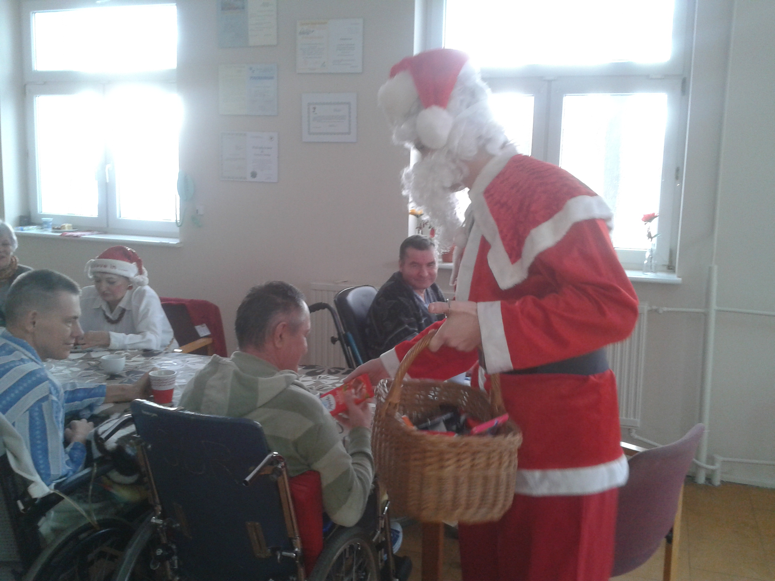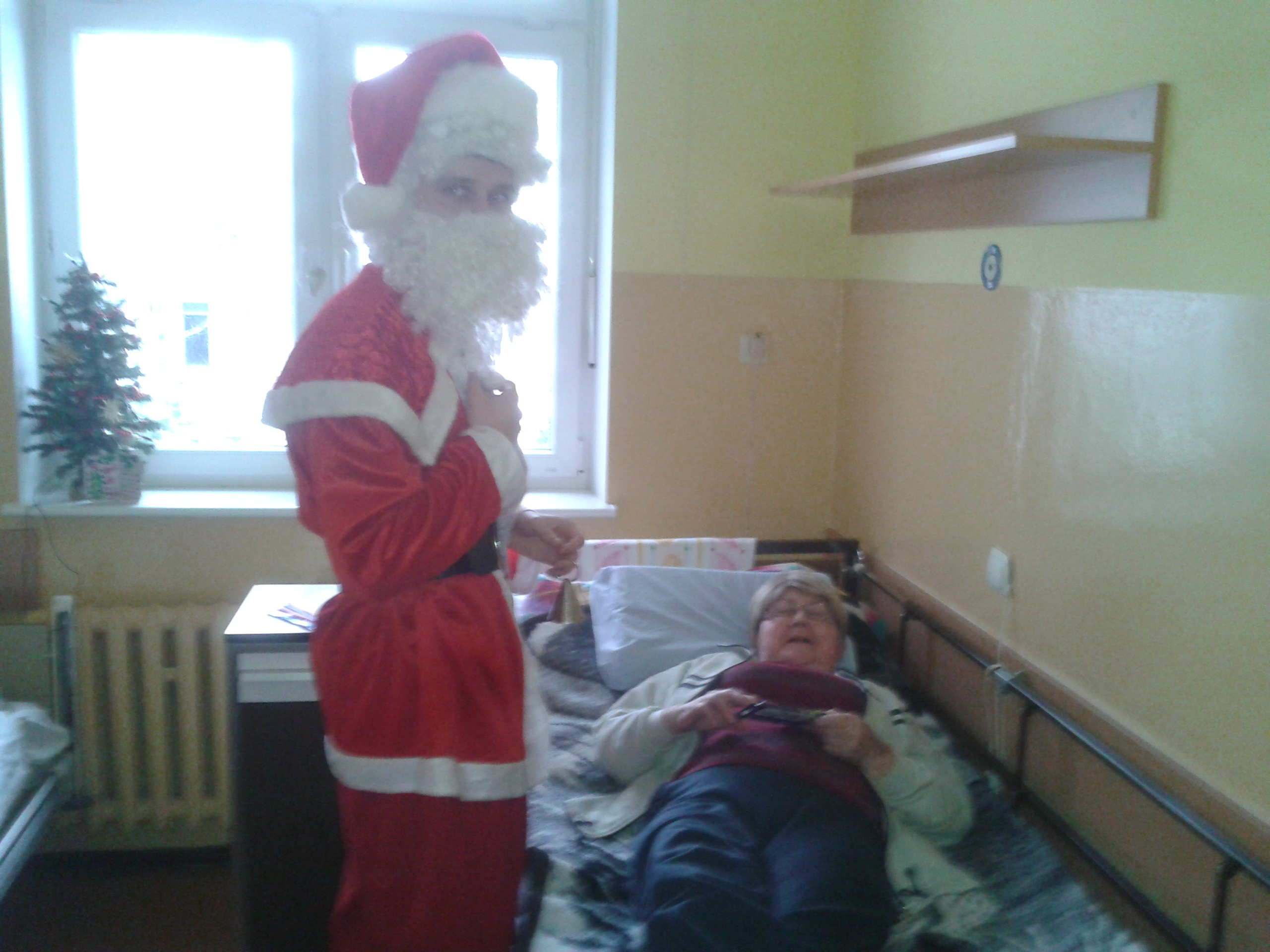 Mikołaj Święty Mikołaju Na Ciebie czekamy Przez okno zmarznięte Ciągle wyglądamy Przyjdź do nas w gościnę Szczerze zapraszamy Wierszyk Ci powiemy Piosenkę zaśpiewamy W piątek, 6 grudnia do hospicjum zawitał Święty Mikołaj. Na twarzach pacjentów naprzemiennie malowało się zdumienie z niedowierzaniem. Mikołaj znalazł czas dla wszystkich, z każdym porozmawiał oraz wręczył prezent. Mikołaj sprawił, że pacjenci choć na chwilę zapomnieli o chorobie. Odwiedziny gościa przez moment zniwelowały ból, tęsknotę za bliskimi oraz wprowadziły na sale odrobinę radości. Strona w języku polskim Strona w jzyku angielskim